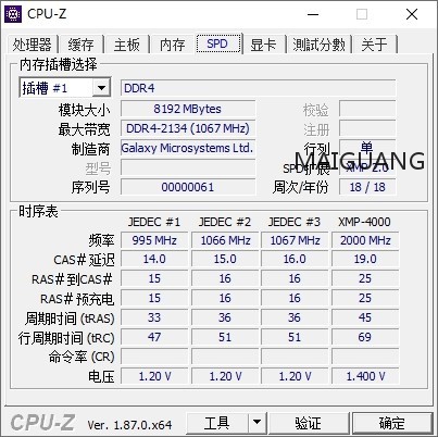 内存条有频率、时序、电压等不同参数。这些参数统称起来,就叫SPD信息。